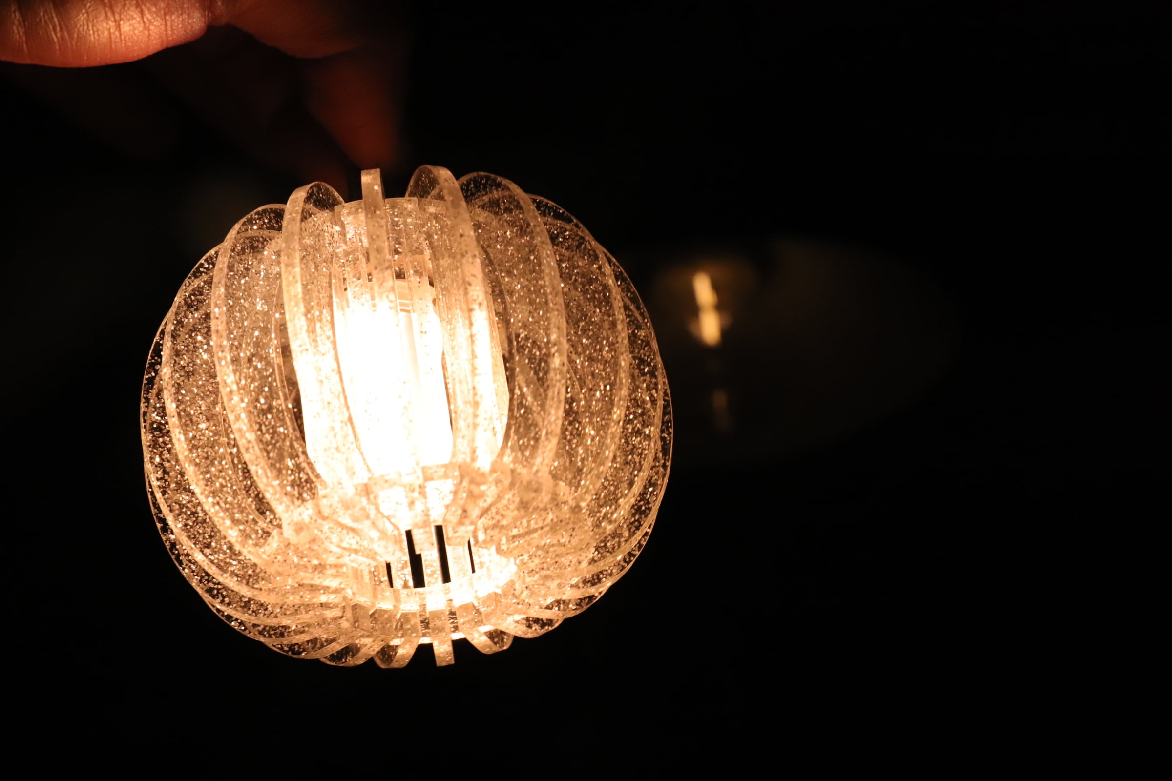 外側だけでなく内側にもシェードを二重に入れている為、ライト本体を主張し過ぎず光の透け感がとても美しい仕上がりとなりました。